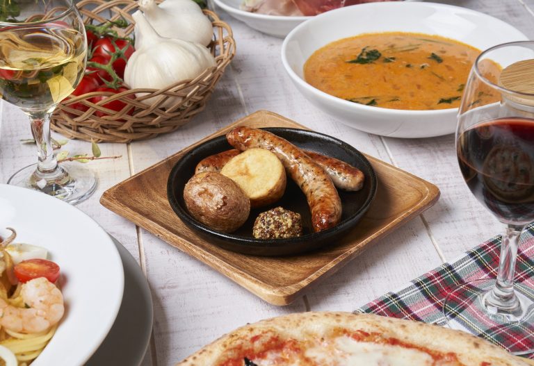 熱々のソーセージがお酒のお供に